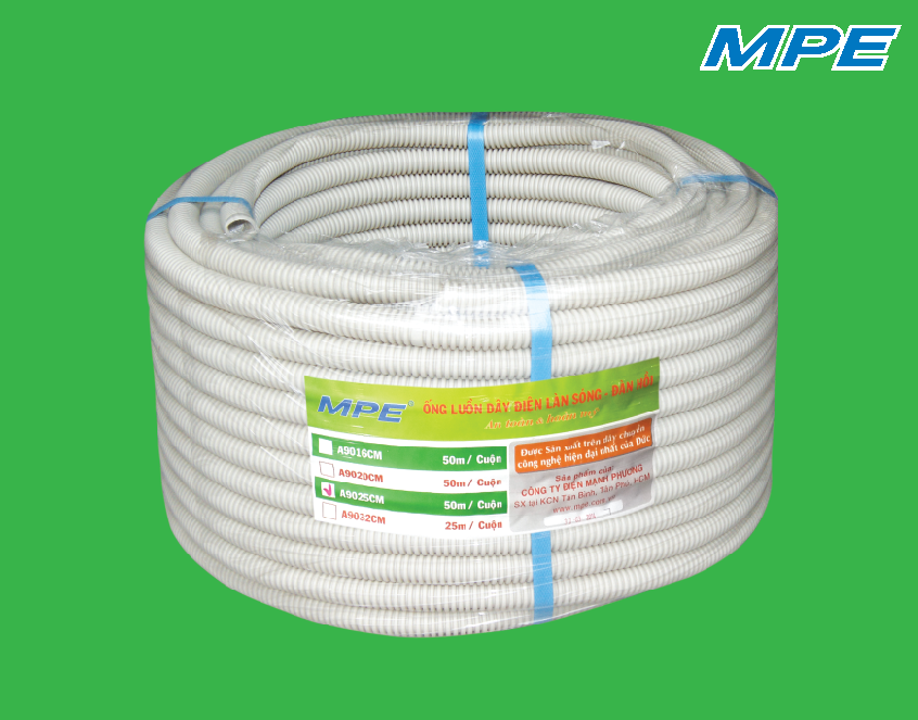 Ống ruột gà PVC phi 20 cao cấp của MPE được sản xuất bằng nhựa dẻo chống cháy